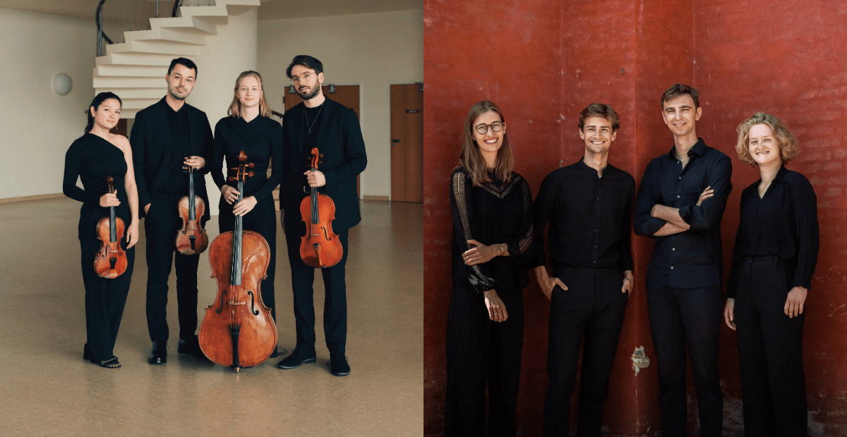 Novo Quartet er en prisbelønnet dansk strygekvartet, kendt for sit energiske spil og stærke sceniske udtryk. Kvartetten har markeret sig internationalt med koncerter i hele Europa og anmelderroste indspilninger. Deres fortolkninger kombinerer teknisk overskud med tydelig dramatisk fortælling. Repertoiret spænder fra klassikere til nye værker skrevet til ensemblet. Akela Quartet er et ungt dansk strygekvartet med fokus på nærvær, klanglig fordybelse og nysgerrige programmer. Ensemblet arbejder engageret med både det klassiske kvartetrepertoire og nyere musik. Samspillet er præget af klarhed, energi og stor opmærksomhed på de musikalske detaljer. Akela Quartet har allerede markeret sig på danske koncertscener og festivaler. Det bliver spændende at høre de to kvartetter spille sammen i Mendelssohns oktet.