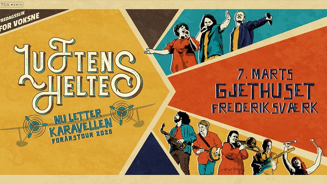 Op i karrusellen for nu letter karavellen – og dét med et brag! I foråret 2026 flyver Luftens Helte igen over Danmark med et eksplosivt show fyldt med fest, magi og de sange, du (stadig) kan udenad.